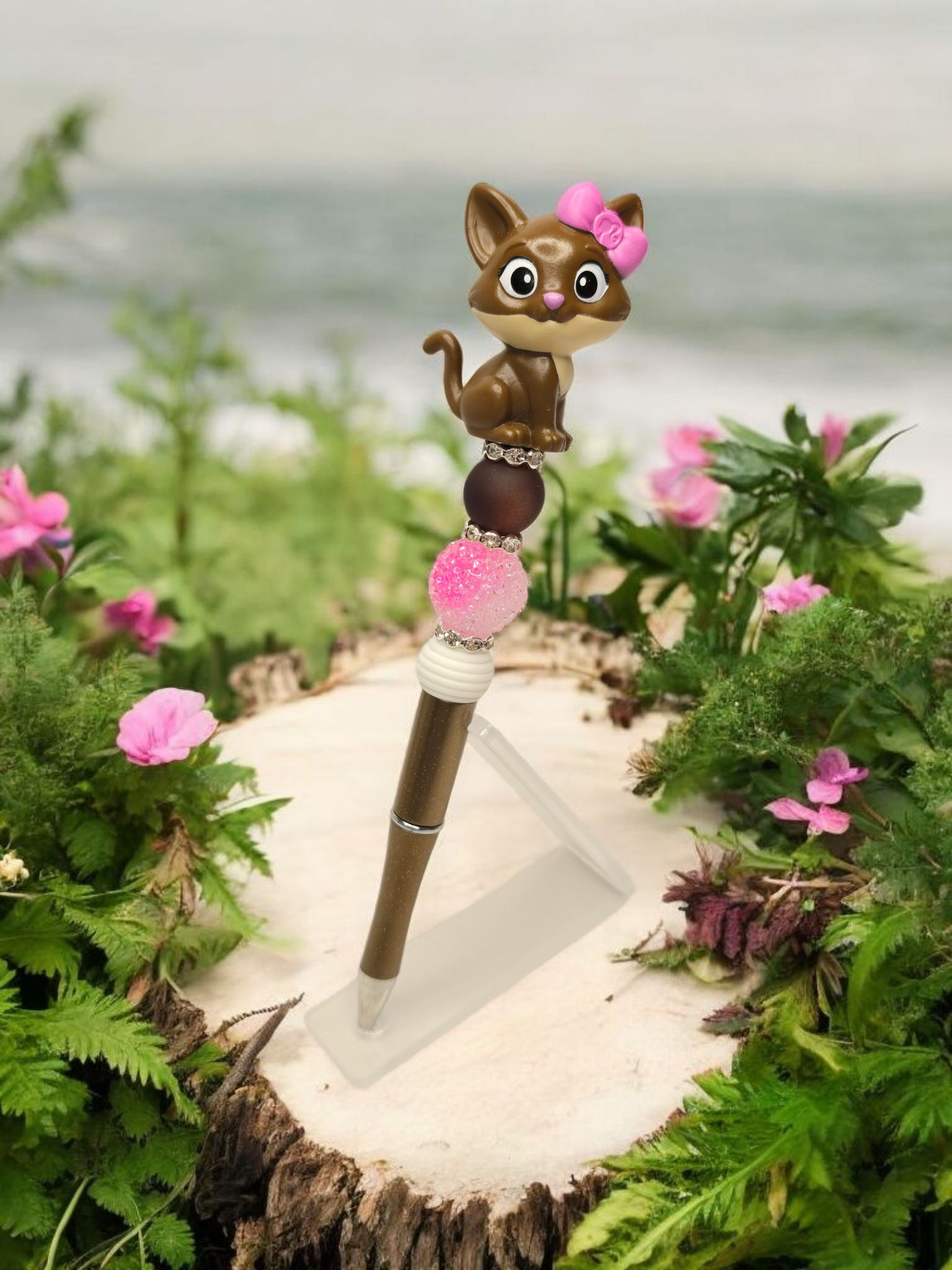 The Barbie Cat pen features a cat-shaped topper inspired by the iconic Barbie. Combining playfulness and functionality, this pen adds a touch of fun to your writing experience. Perfect for any cat or Barbie lover, it's a must-have addition to your collection.
