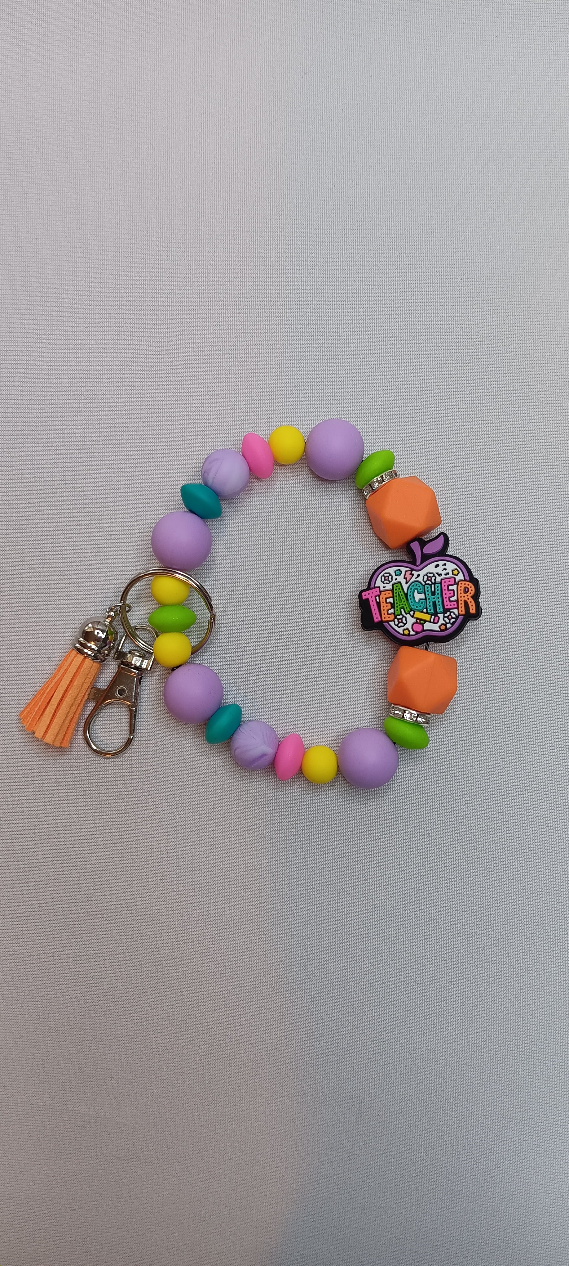 The Bright Apple is a must-have for every teacher. This wristlet is made of bright and colorful beaded silicone, making it both stylish and durable. Keep your keys, ID, and other essentials easily accessible while adding a pop of color to your outfit. Stay organized and look great with Bright Apple.