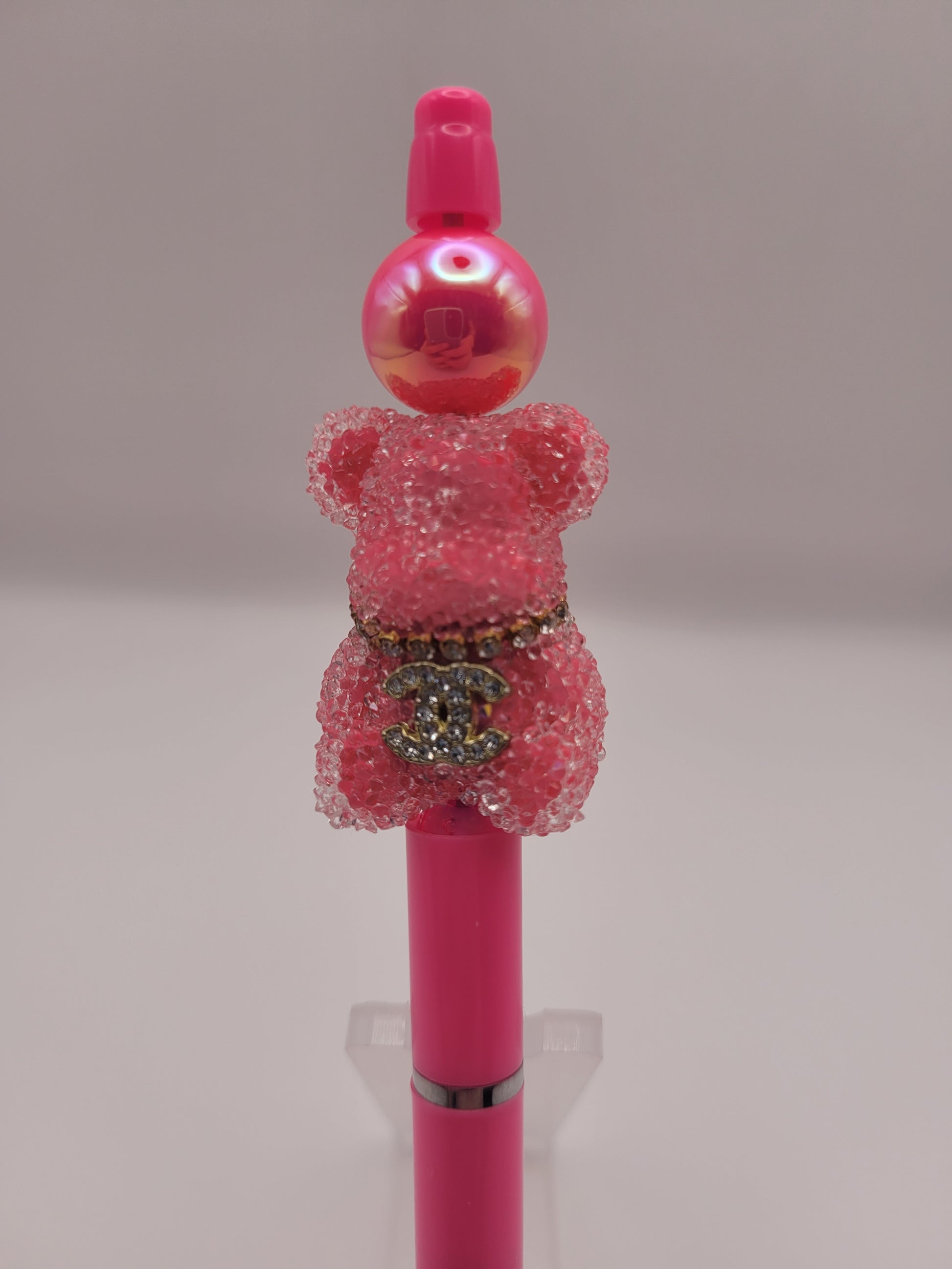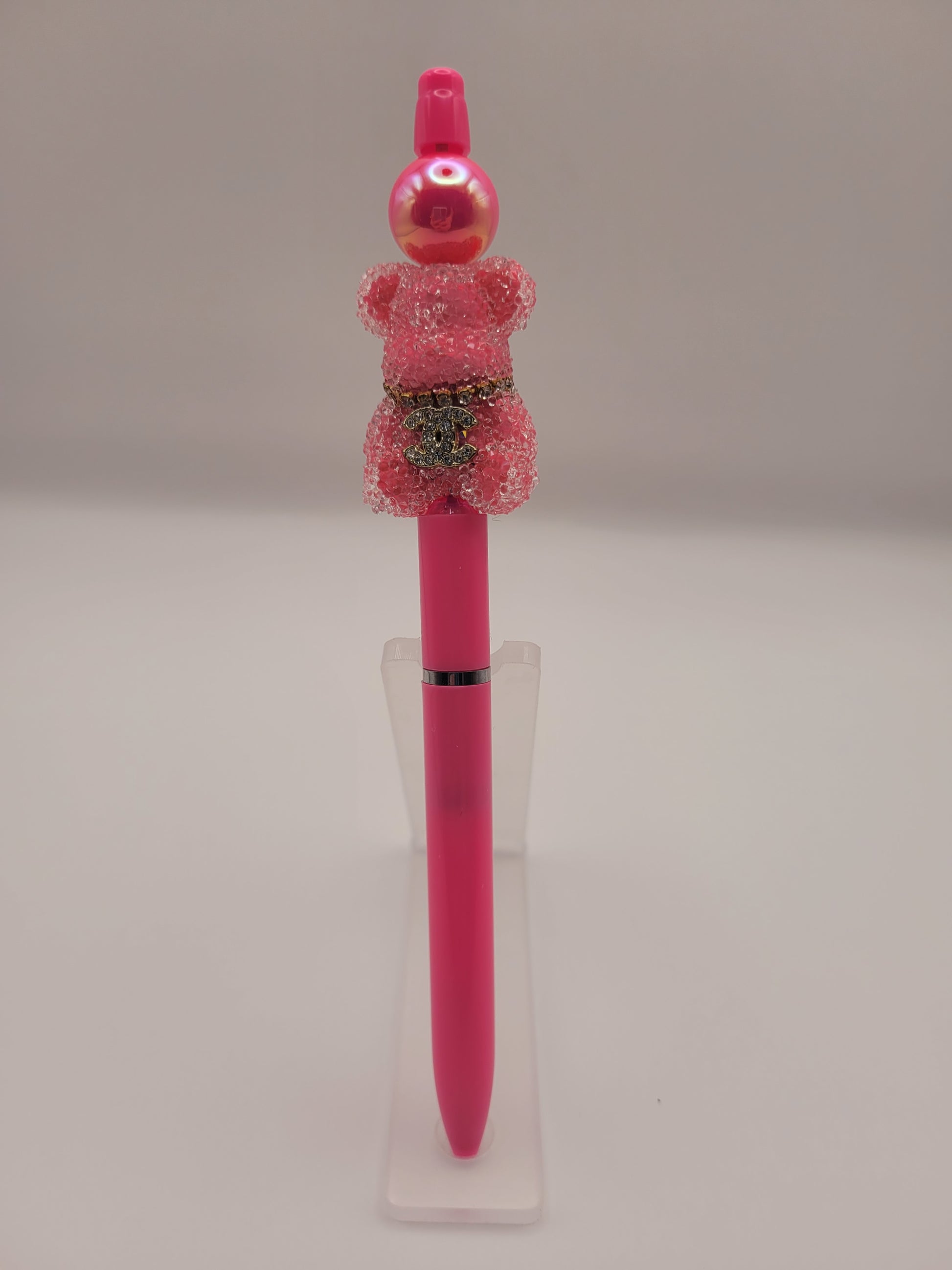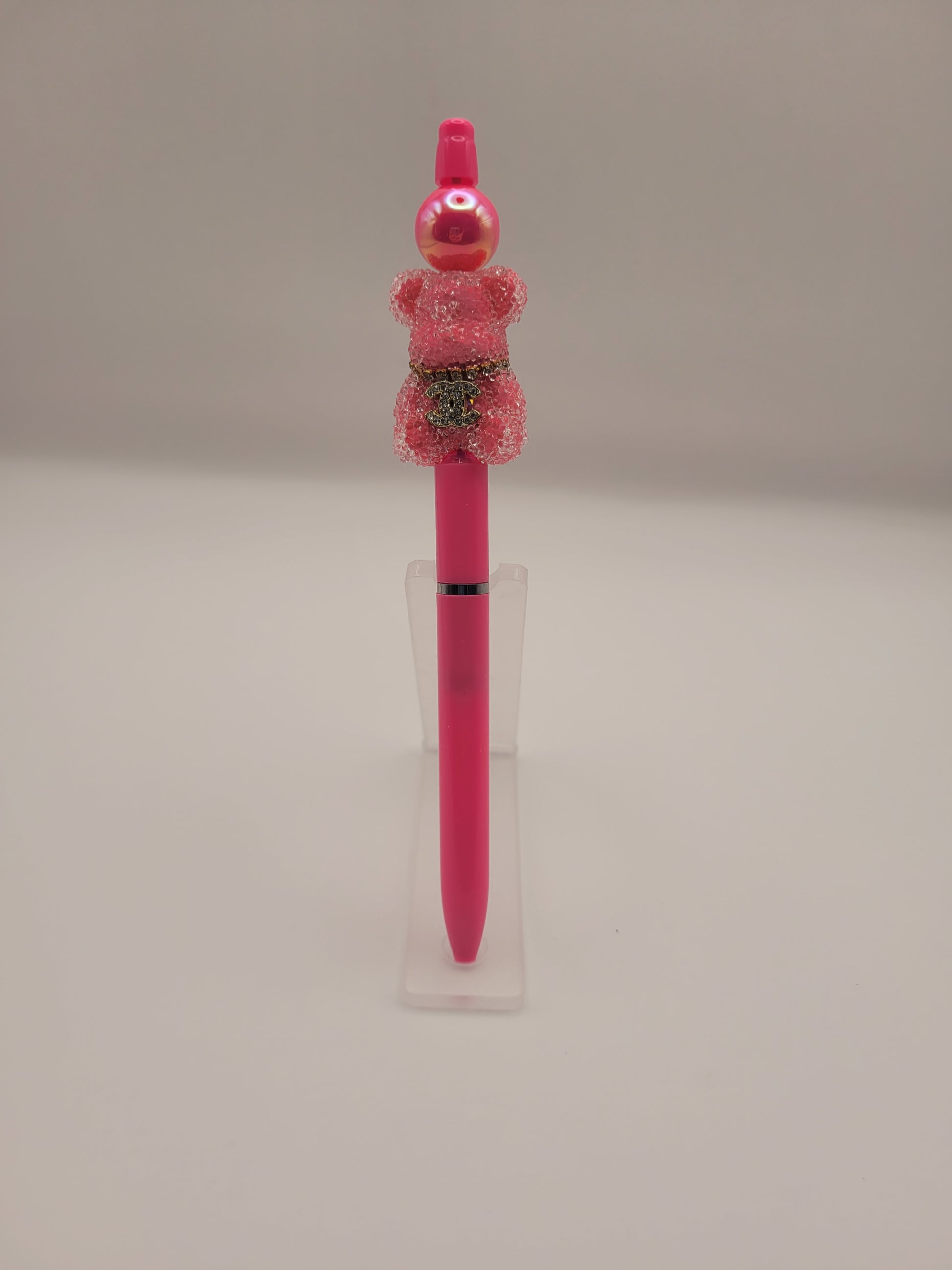 The Gummy Bear Crush pen features an eye-catching hot pink design complemented by a sparkly bear bead. This pen not only serves as a functional writing instrument but also as a decorative accessory, enhancing your stationery collection with a playful yet refined aesthetic. Ideal for everyday use or gifting.