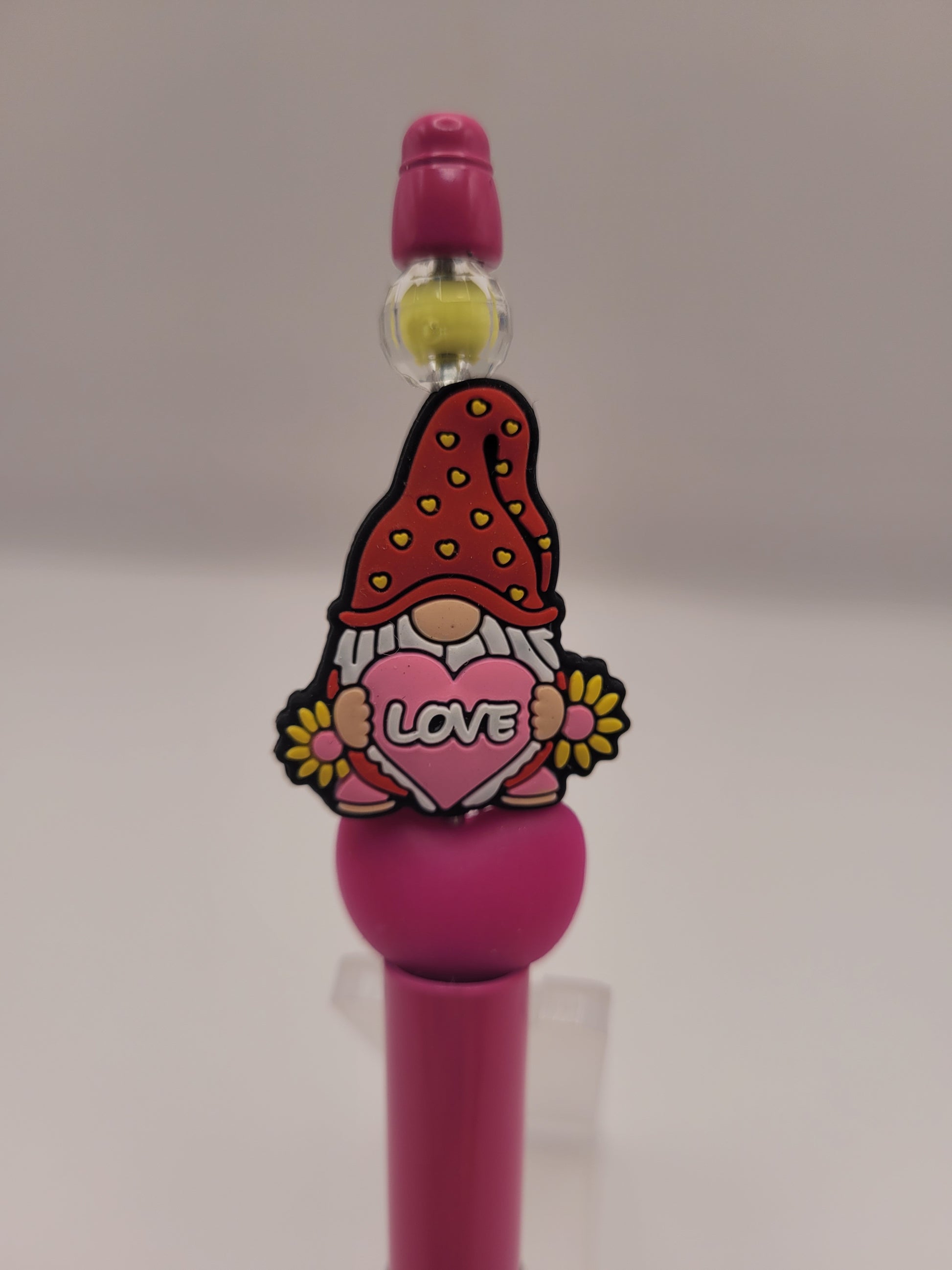 The Love Flower Gnome is a Valentine's Day pen featuring a gnome holding a heart, complemented by floral accents. This unique design enhances stationery items, making it an ideal gift for expressing affection. Its vibrant imagery can reinforce sentiments of love, contributing to meaningful communication.