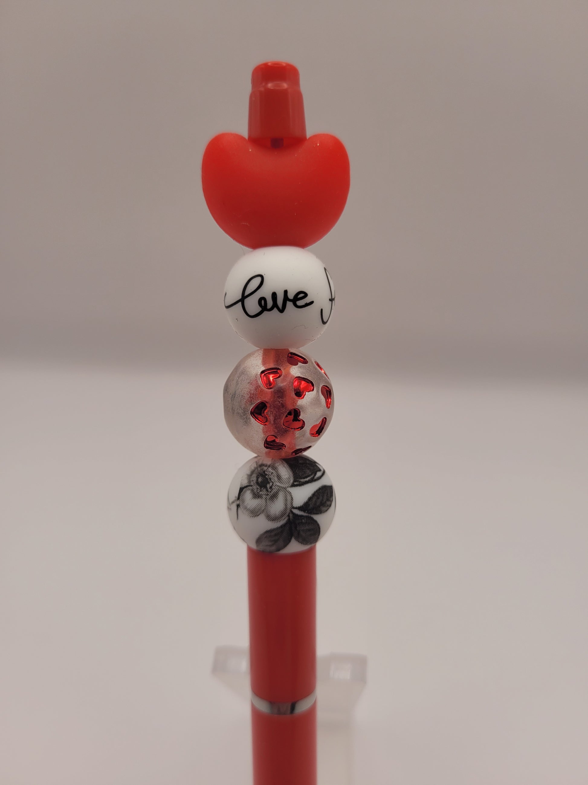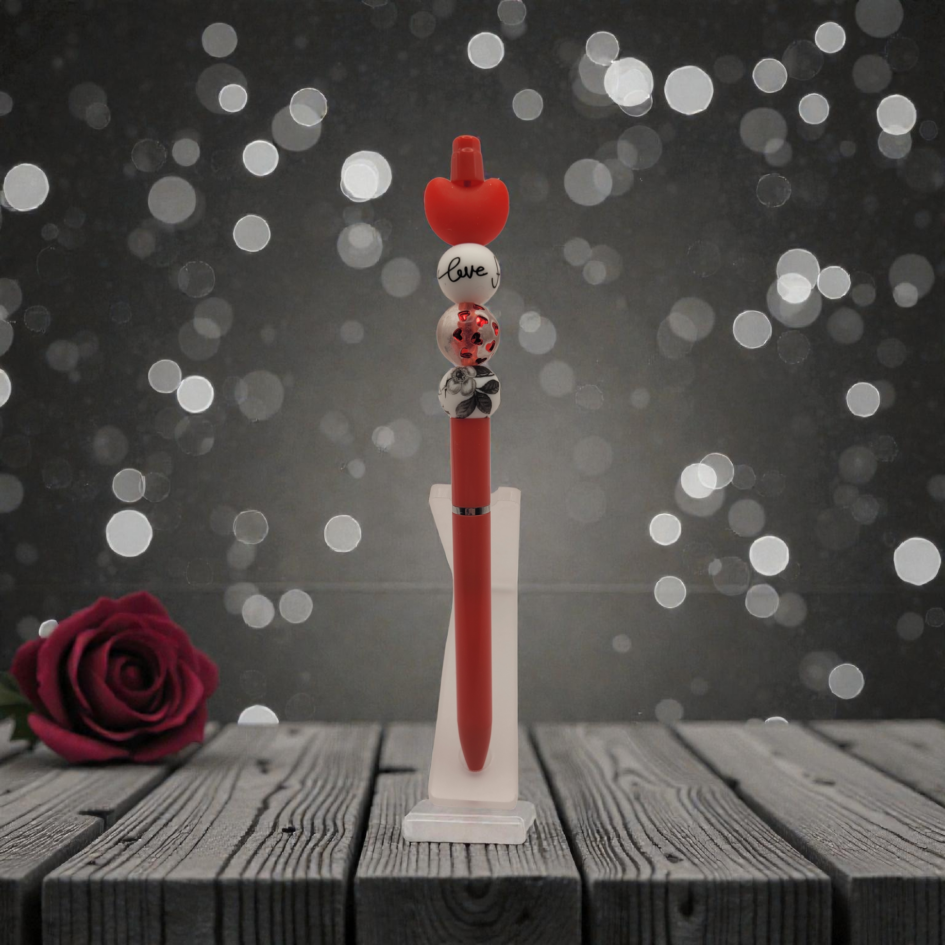 The Love You Forever pen features a striking red, black, and white color scheme, perfect for Valentine's Day. Its design not only enhances aesthetic appeal but also provides an engaging writing experience, making it suitable for heartfelt messages or notes.
