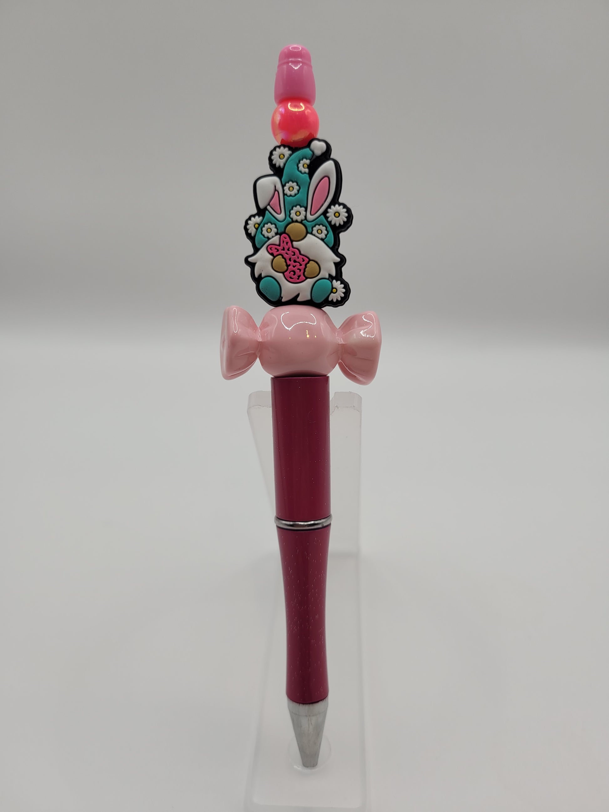 Meet the Sweet Spring Snuggles pen—a whimsical writing companion so delightful, it might just make you giggle while you jot! With its pink theme, cute Easter gnome bead, and sugary candy bead, this pen is perfect for sprinkling a little sweetness on those boring notes. Writing has never been so charmingly fun!