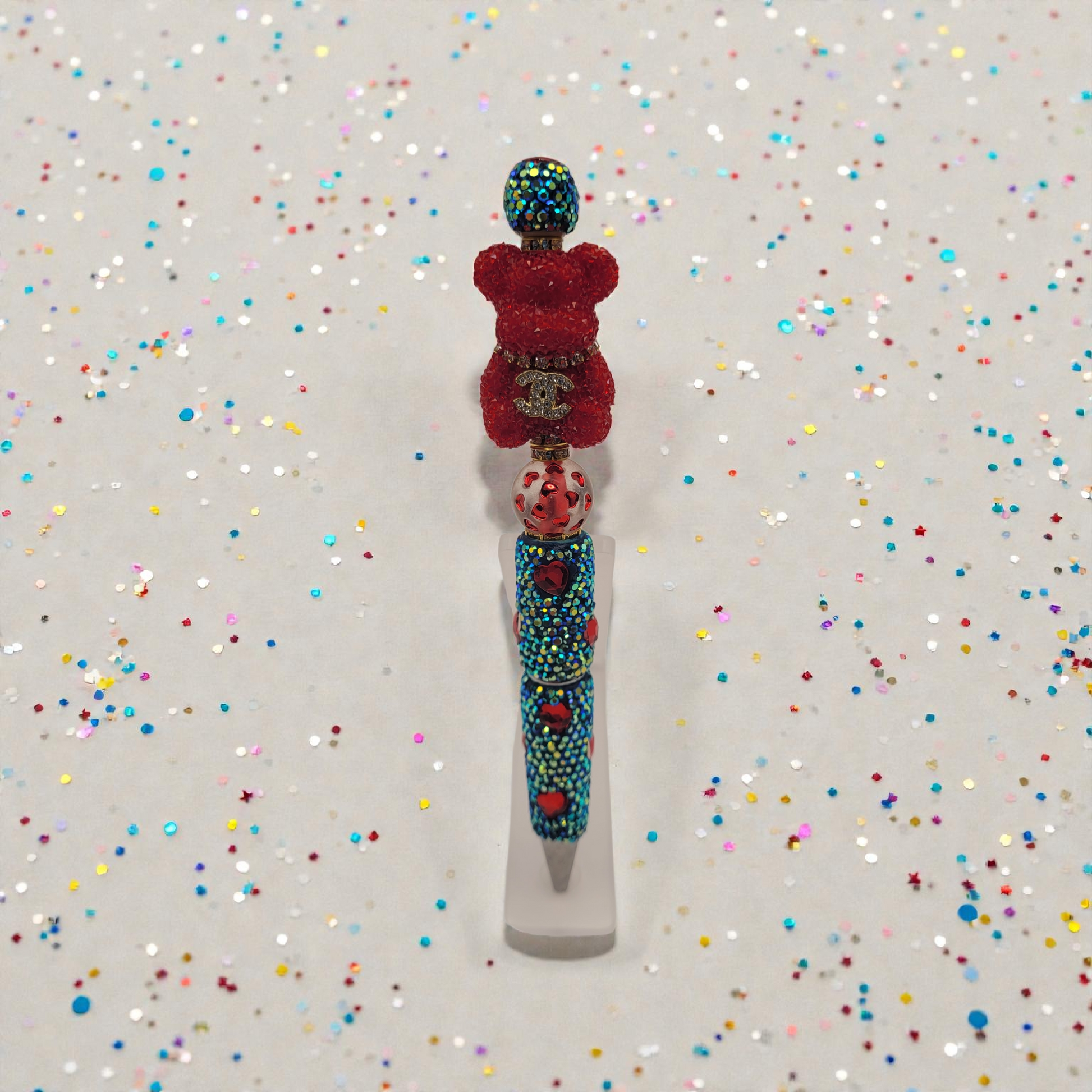 Meet the Sweetheart Bear, your new writing buddy with a flair for fun! This pen is dressed in a blue and red theme, boasting a cuddly red bear and a flurry of hearts. Perfect for jotting down sweet nothings or signing love notes—because even your pen should be a little love-struck!